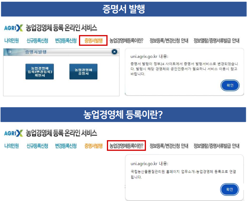 농업경영체등록 확인서 인터넷 발급 안내