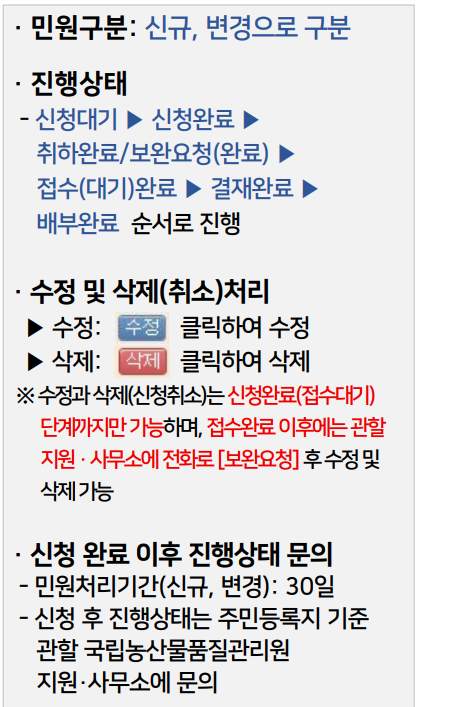 - 민원처리 기간: 신청이 완료된 후 민원처리기간은 30일이 소요되며, 이후 등록 여부를 확인할 수 있습니다.