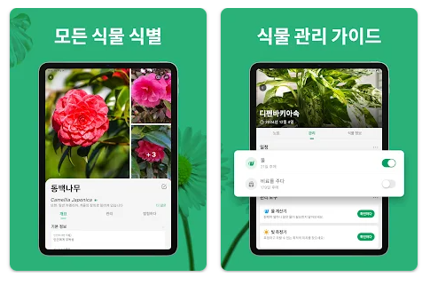 식물, 나무, 꽃 식별; 맞춤형 관리 가이드; 질병 자동 진단