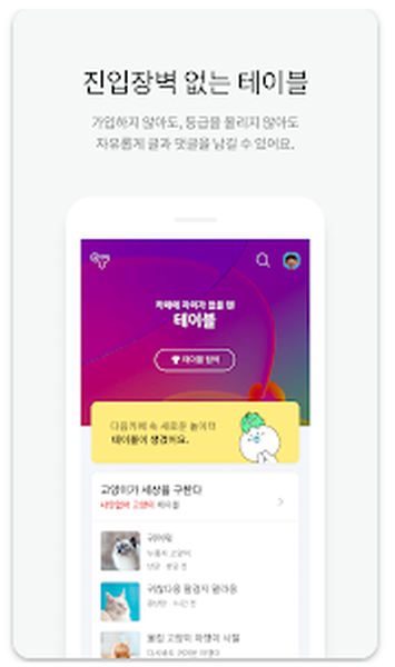 since 1999, 여러분의 이야기를 펼쳐 온 Daum카페! 이젠 앱에서 모바일에 특화된 기능을 통해 더욱 편리하게 즐겨보세요. ◈ 카페에 자리가 없을 땐 테이블 - 관심있는 주제의 테이블이 있으면 바
